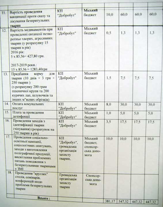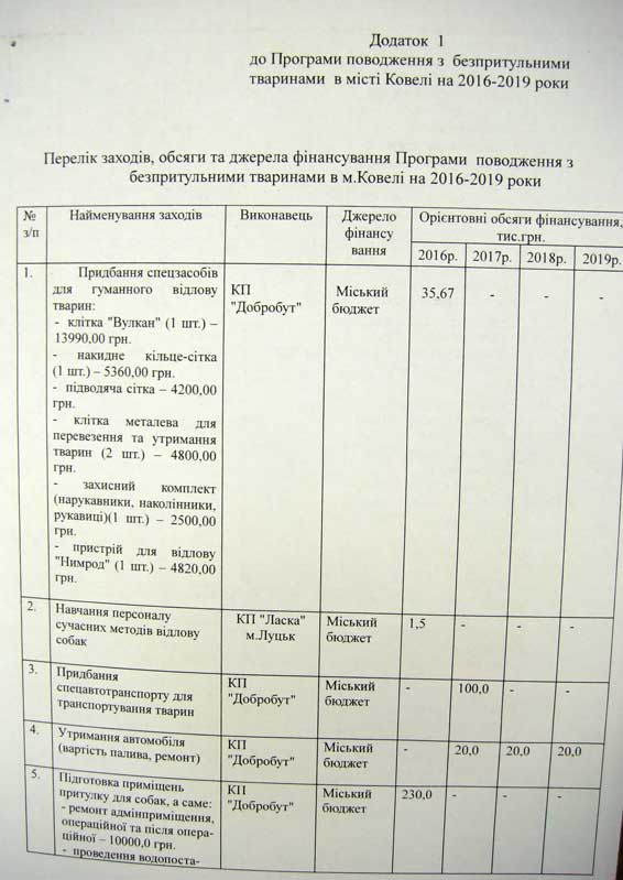 Щоб досягти зменшення кількості безпритульних тварин гуманними методами, забезпечити їх комфортне співіснування поряд із людиною та утвердитися в суспільстві гуманного ставлення до тварин, Ковельська міська рада ухвалила на три роки спеціальну Програму поводження з безпритульними тваринами. Фінансування Програми передбачається за рахунок міського бюджету, коштів обласного фонду охорони навколишнього природного середовища, міжнародної фінансової допомоги та інших джерел. Зокрема, з міської казни планується виділити вже цьогоріч 381,17 тисяч гривень, в наступному році – 547,32 тисячі, а в 2019-му – 447,32 тисячі гривень. В документі прописано, що фінансові витрати підуть на навчання персоналу, придбання спецзасобів для відлову та транспорту для перевезення тварин, підготовку приміщення для утримання безпритульних, закупівлю оргтехніки, медикаментів, корму для чотирилапих, заробітну плату працюючим тощо. У Програмі прописані механізми гуманного відлову безпритульних, подальша робота з тваринами, зокрема, їх стерилізація, вакцинація та лікування, а також можливі випадки евтаназії. До речі, всі ці медичні процедури відбуватимуться на базі КП «Добробут», а також в установах ветеринарної медицини (за згодою). Згідно з прийнятою Програмою, в Центрі ідентифікації при КП «Добробут» вестимуть облік, реєстрація та ідентифікація безпритульних тварин, а саме: до бази даних вноситимуть стать, вік, відмітки про стерилізацію та щеплення тварин і присвоєний ідентифікаційний номер. Також там же буде створено й реєстр опікунів безпритульних тварин. А представники громадських організацій, які займаються охороною та захистом тварин, матимуть можливість брати активну участь в роботі Програми. ![]() ![]() ![]() |