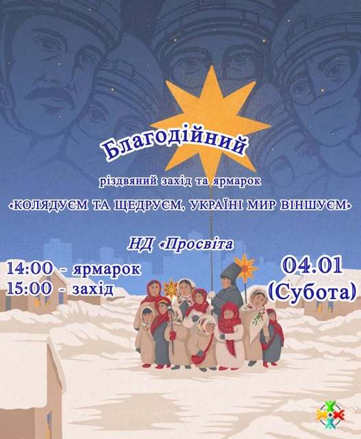 4 січня колектив НД «Просвіта» запрошує на благодійний різдвяний захід «Колядуєм та щедруєм, Україні мир віншуєм»: