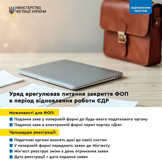 Уряд врегулював питання закриття ФОП в період відновлення роботи ЄДР |